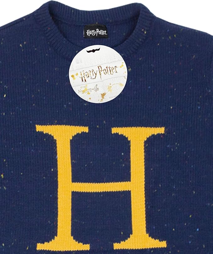 Christmas Jumper Harry Letter H Knitted Unisex Blue Sweater. Fantastic Beasts Panel.