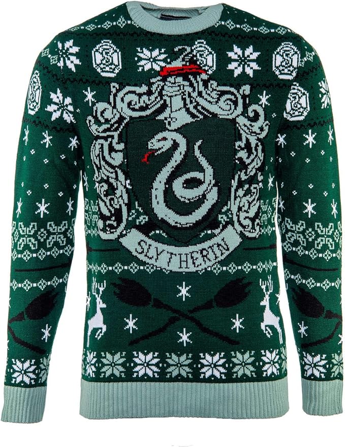 Official Harry Potter Slytherin House Christmas Knitted Jumper Amazon Co Uk Clothing