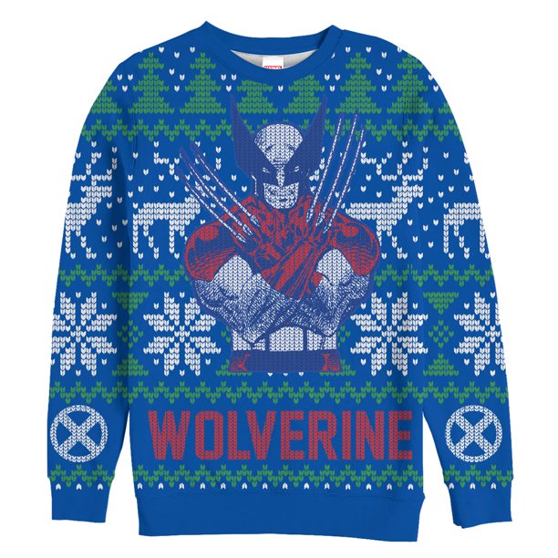 Marvel Men S Marvel Ugly Christmas X Men Wolverine All Over Sweatshirt Royal Blue Small Walmart Com Walmart Com